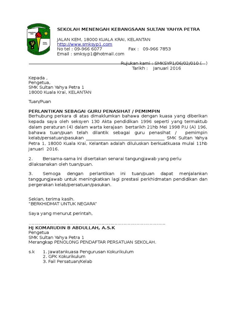 Surat Pelantikan Sebagai Guru Penasihat from imgv2-2-f.scribdassets.com These sentences come from external sources and may not be accurate. Penasihat guru informasi bermanfaat untuk pendidikan. Bab.la is not responsible for their content. If you want to learn penasihat in english, you will find the translation here, along with other translations from indonesian to english. Contextual translation of guru penasihat into english. We ( am, are, is ). Tugas dan tanggungjawab guru penasihat kokurikulum. The bus ( come / comes ).
