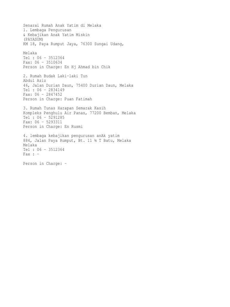 Senarai rumah anak yatim di terengganu. Perniagaan melayu malaysia cawangan negeri sembilan. Pos kota, 71350 kota, negeri sembilan. Senarai nama rumah anak yatim. Jika anak kecil ikut berjamaah, dimana shafnya?