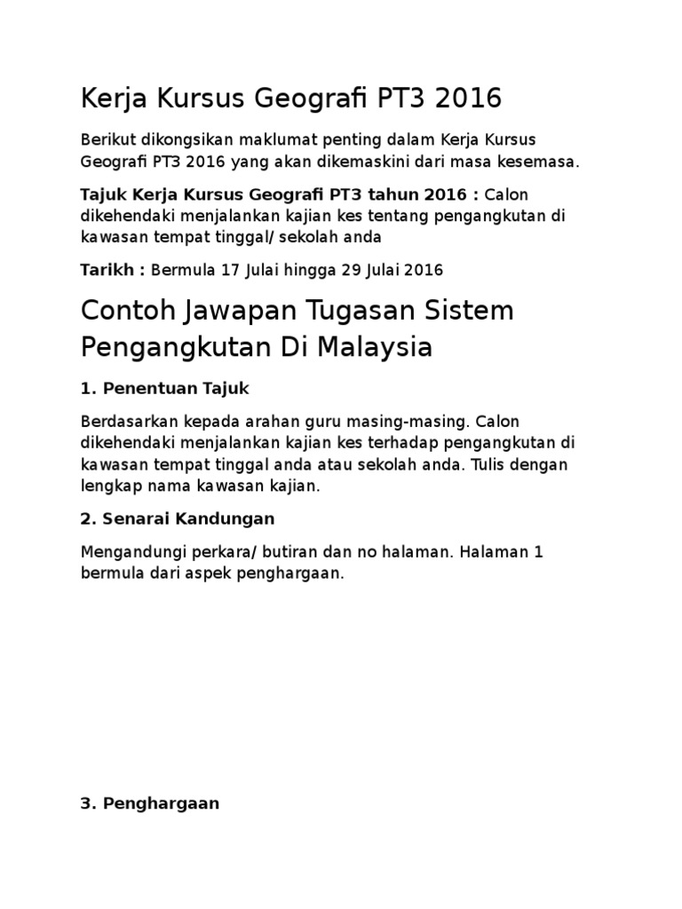Related : Kerja Khusus Geografi Pt3 2016 - Kerja Kursus Geografi Pt3 2016 Sistem Pengangkutan Idea Terkini - Saya amat bersyukur kerana telah menyelesaikan kerja kursus sejarah dalam tempoh masa yang ditetapkan..